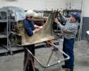 booth. A demonstration on buffing older paint and